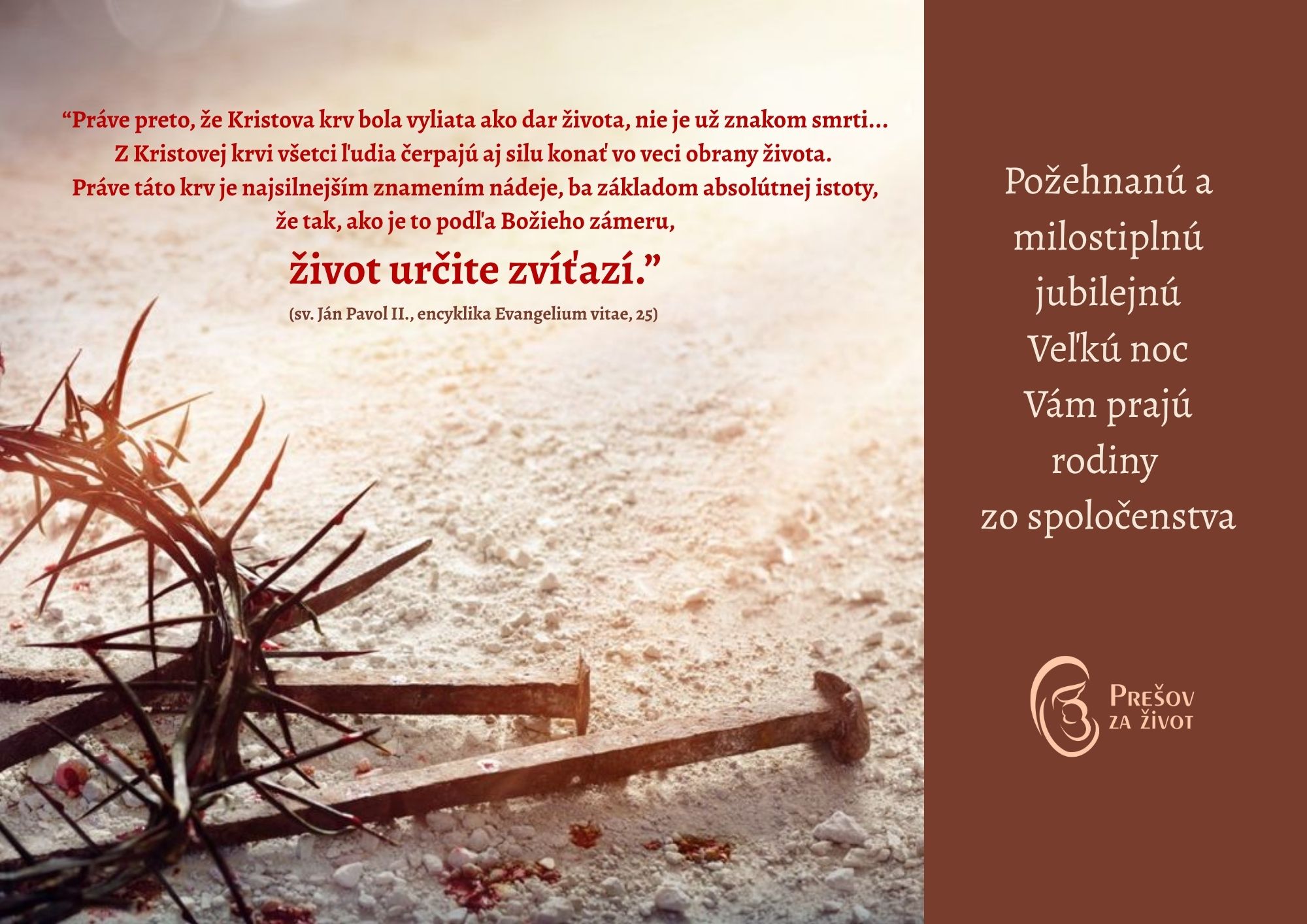 Milí priatelia života, prijmite naše veľkonočné prianie: